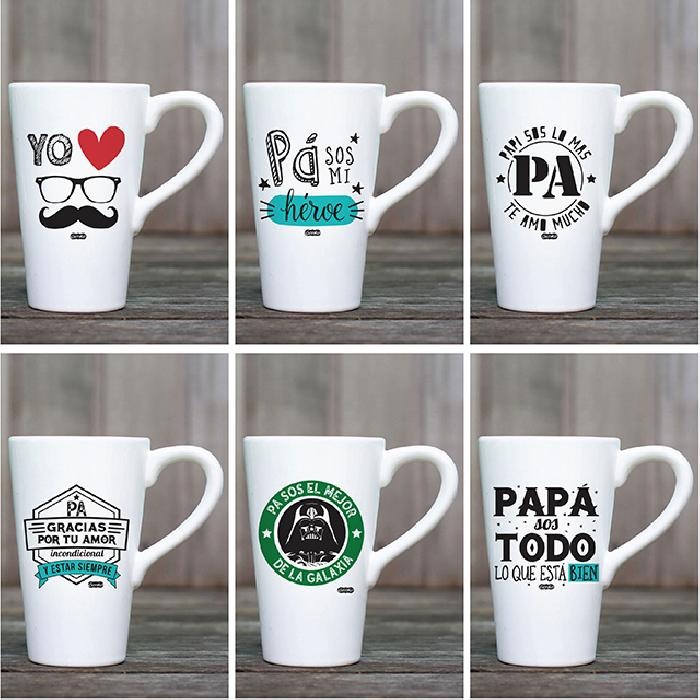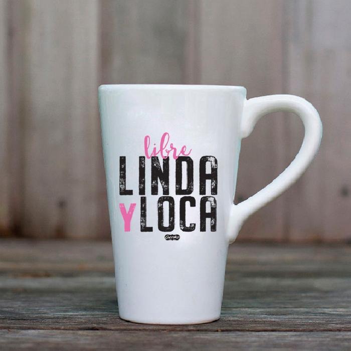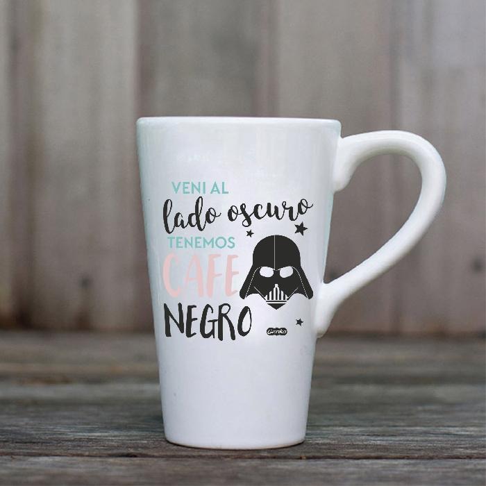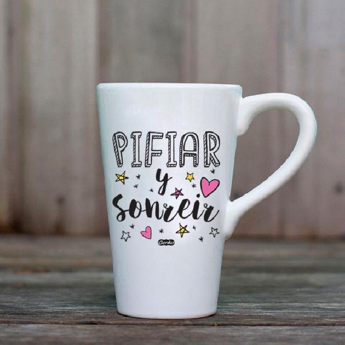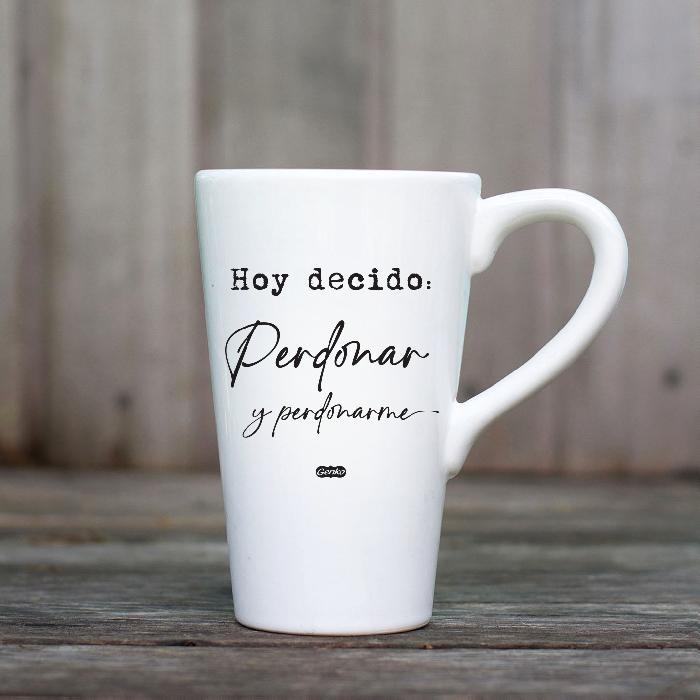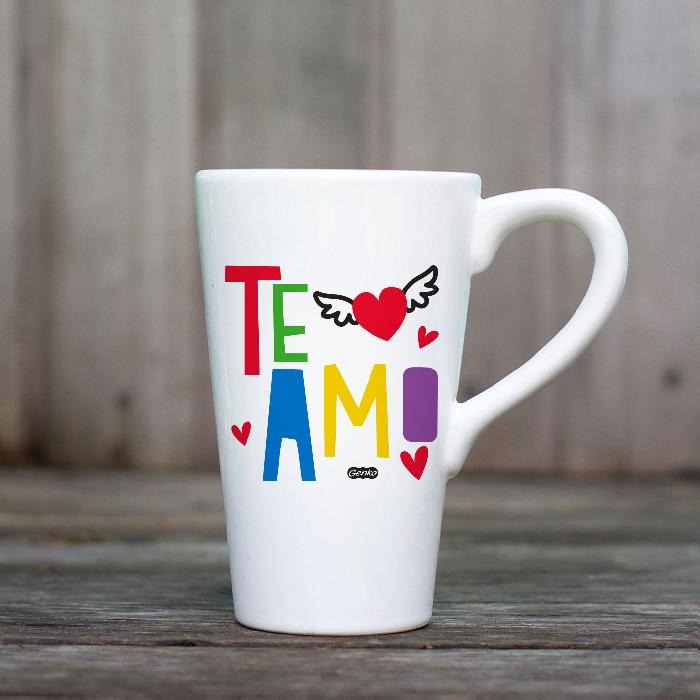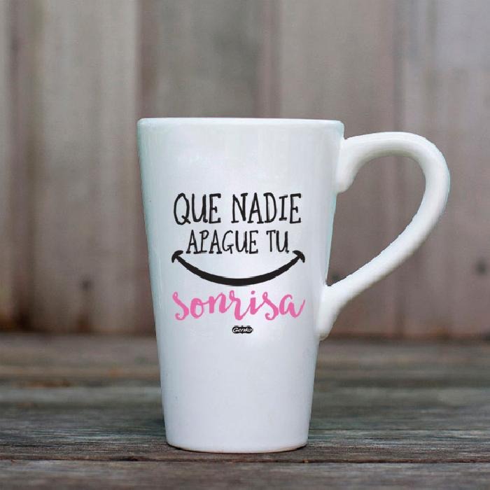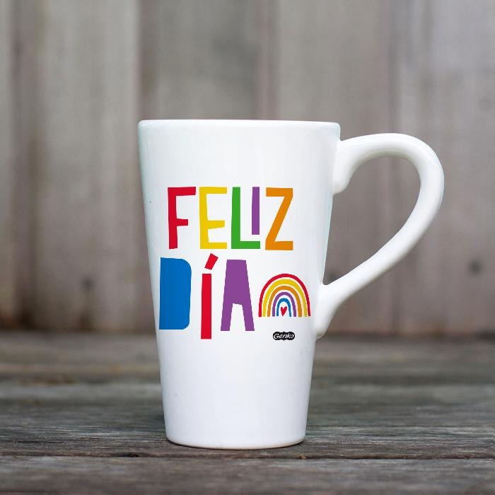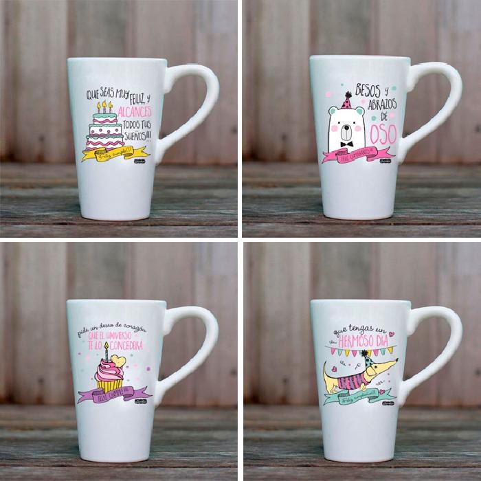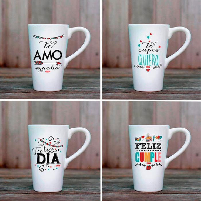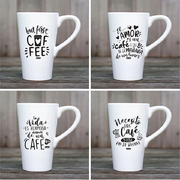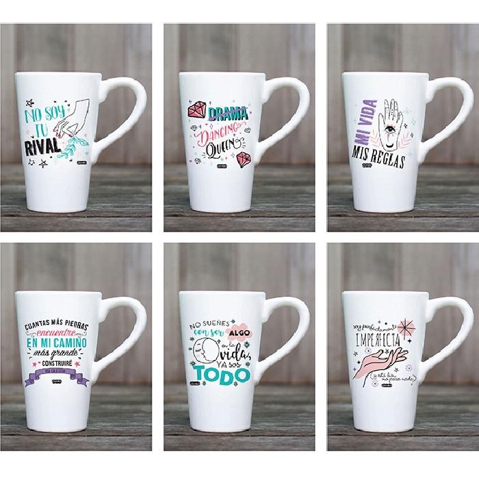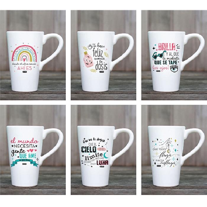 TAZA DE CERAMICA CONICA GRANDE CON DISEÑO Y CAJA