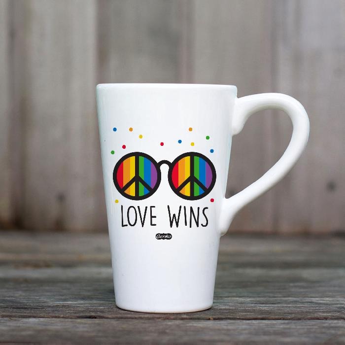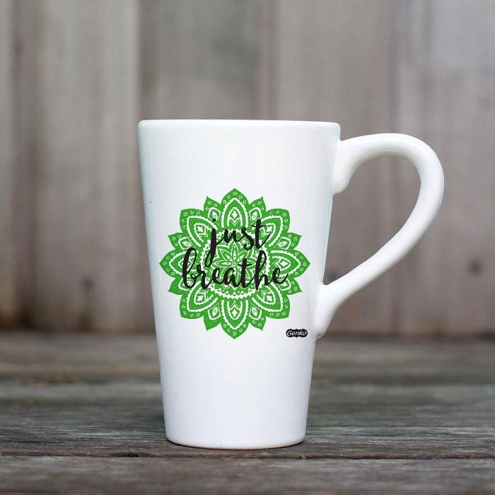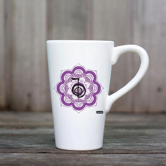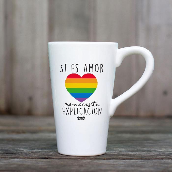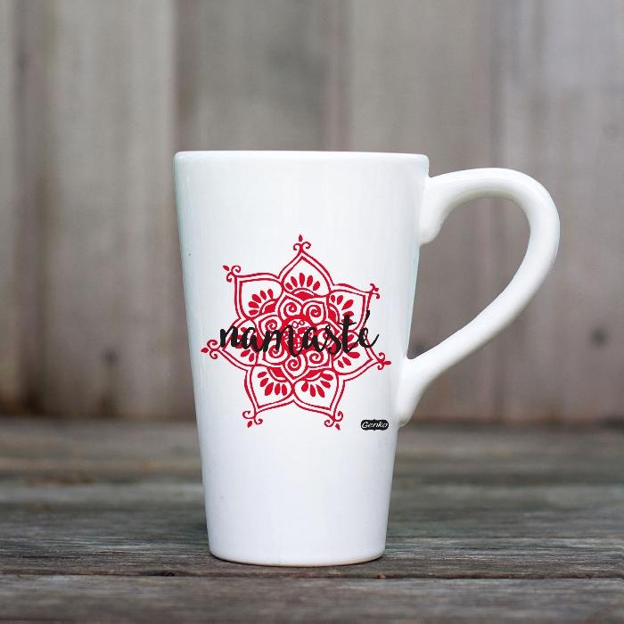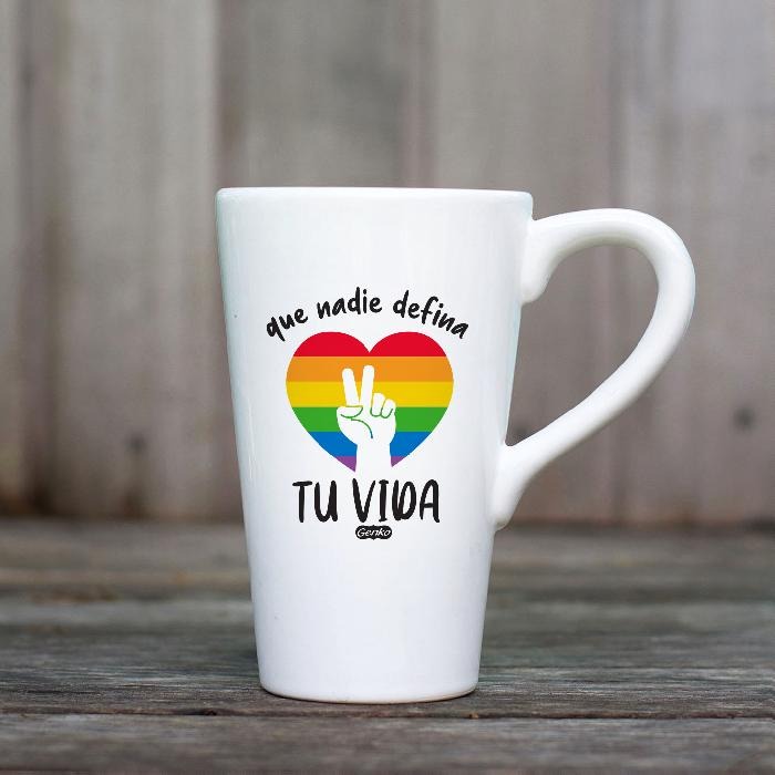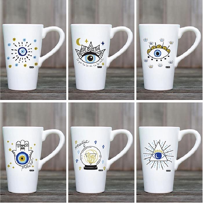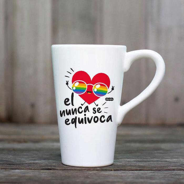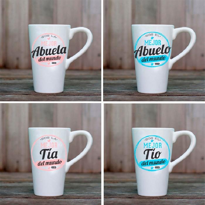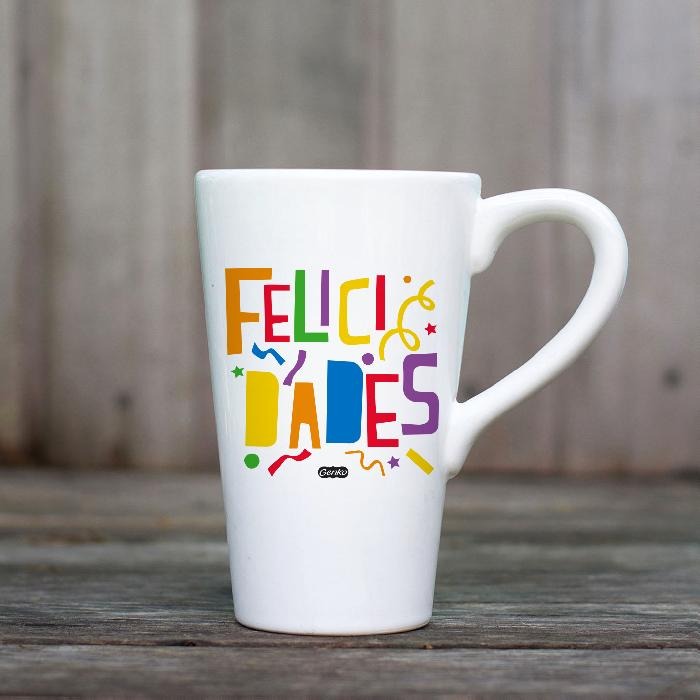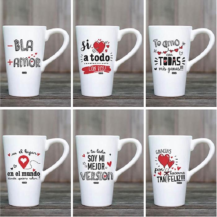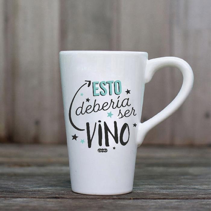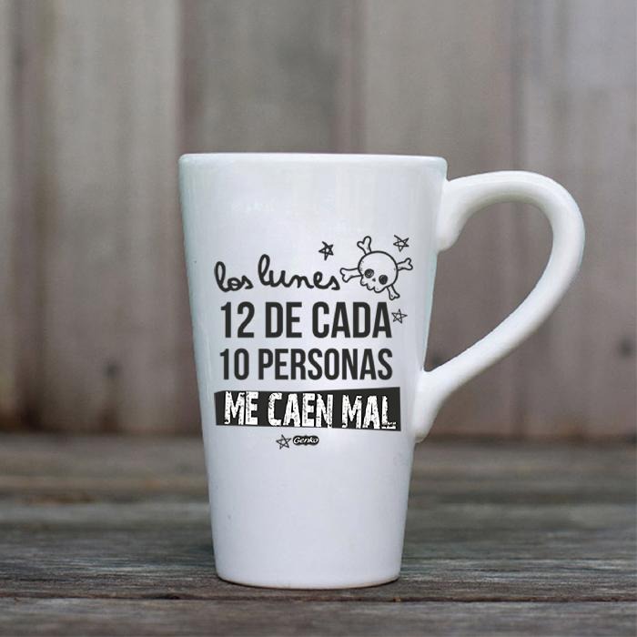 TAZA DE CERAMICA CONICA GRANDE CON DISEÑO Y CAJA
